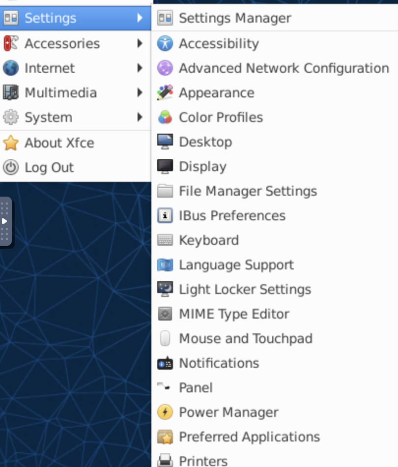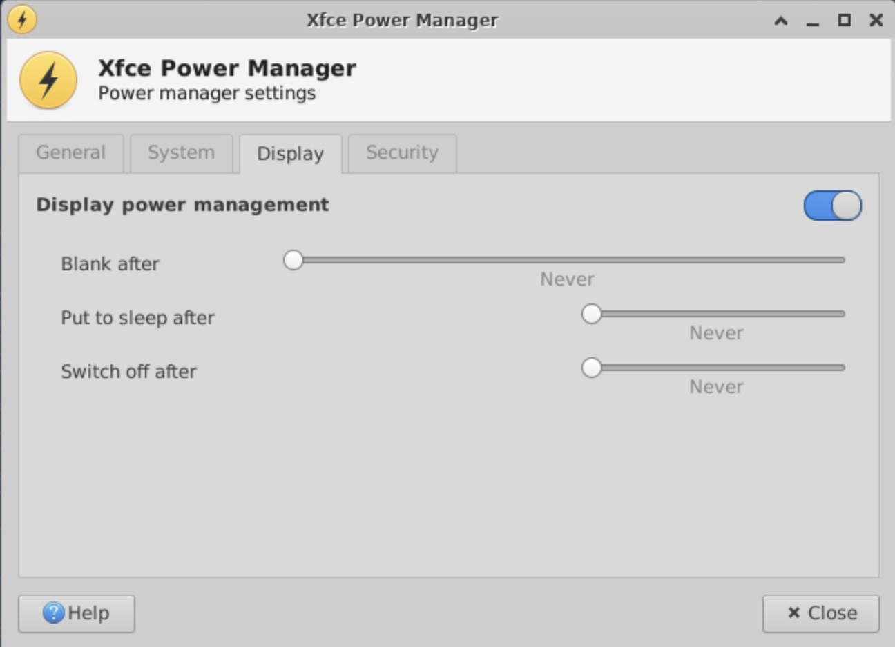 Now, go back into the VNC session (usually by connecting to port 6080) and go to the XFCE4 settings in the GUI. You will see a new “Power” option.